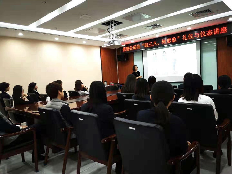在“三•八”国际妇女节来临之际,为营造健康向上、团结和谐的工作氛围,进一步提升女职工的综合素养,树立美好职业形象,信德公证处开展了为女职工送温暖、倡礼仪活动。