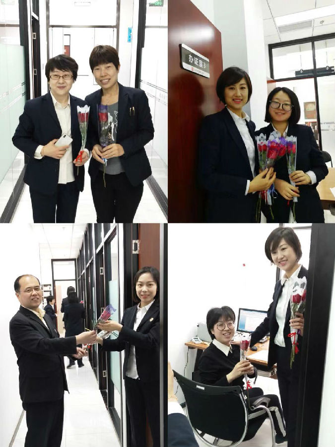 为了向坚守在工作一线,任劳任怨,自强不息,舍小家为大家的女职工们献上节日的祝福,3月8日上午,信德公证处主任、党支部书记官月梅、副书记缐芳芳、业务部主任张伏林等向在工作岗位上的每一名女职工送上了玫瑰花和节日问候,衷心祝愿大家节日快乐!
