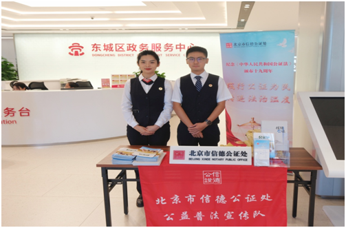 践行公证为民,传递法治温度。时值《中华人民共和国公证法》颁布十九周年之际,信德公证处依托东城区政务服务中心、市级文化产业园天坛文化体育中心等宣传阵地,开展专题普法系列活动。