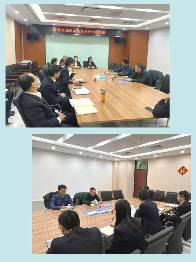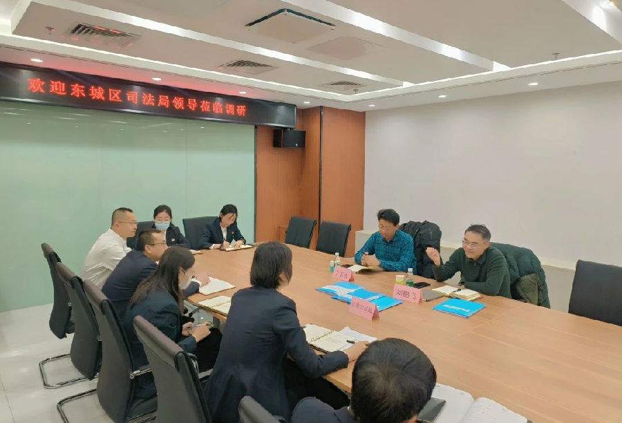 1月23日上午,东城区司法局副局长刘鹏飞、公证管理科科长于志水一行到北京市信德公证处开展工作调研及节前安全检查。